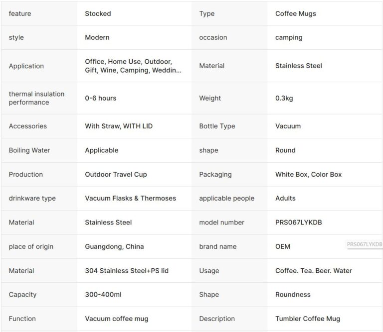 Be the first to review “304 Stainless Steel Coffee Cup with Handle Outdoor Camping Mug Restaurant Beer Cup Picnic Double Wall Vacuum Mug with Lid” Cancel reply