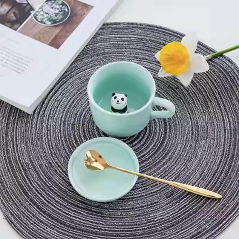 Cartoon Ceramics Animal Teacup With Handle 3D Coffee Mug Animal Inside 8OZ With Panda