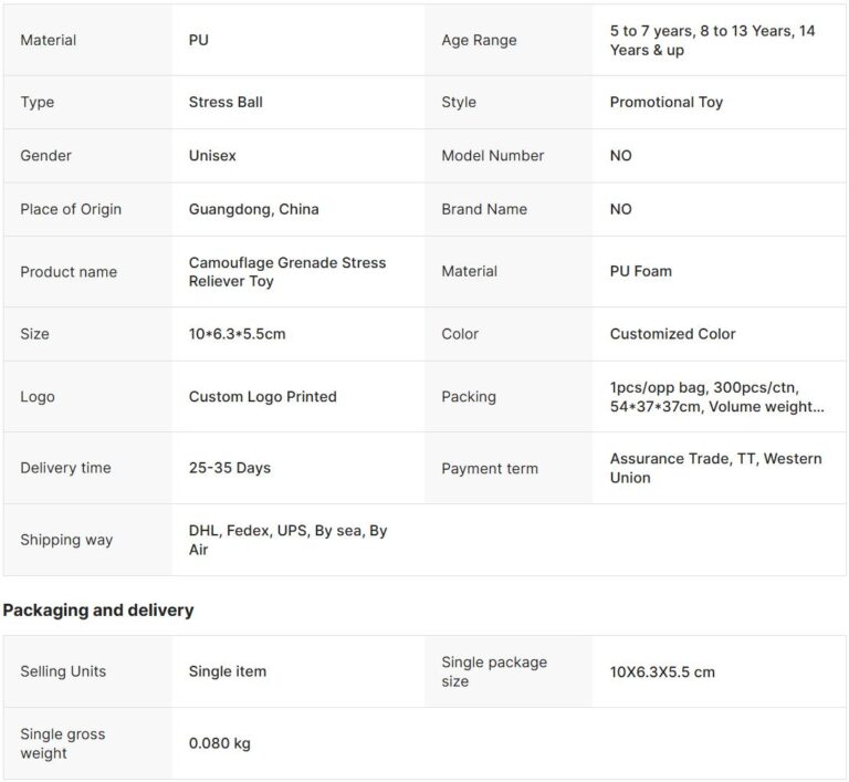 Be the first to review “Custom Camouflage Grenade Stress Reliever Toy PU Foam Soft Material Anti-Stress Ball Unisex Print Logo Soft Hand Feeling”