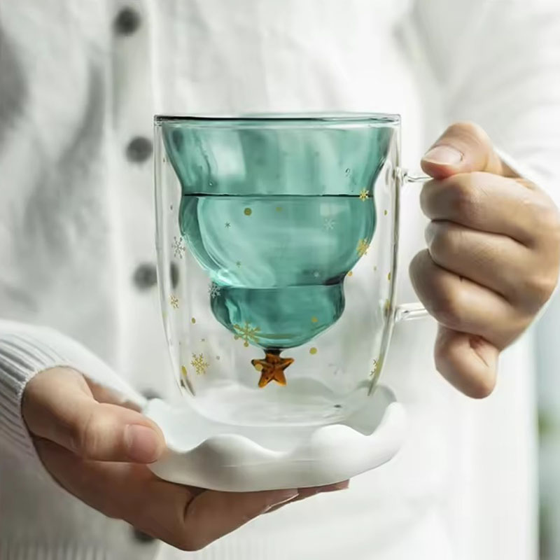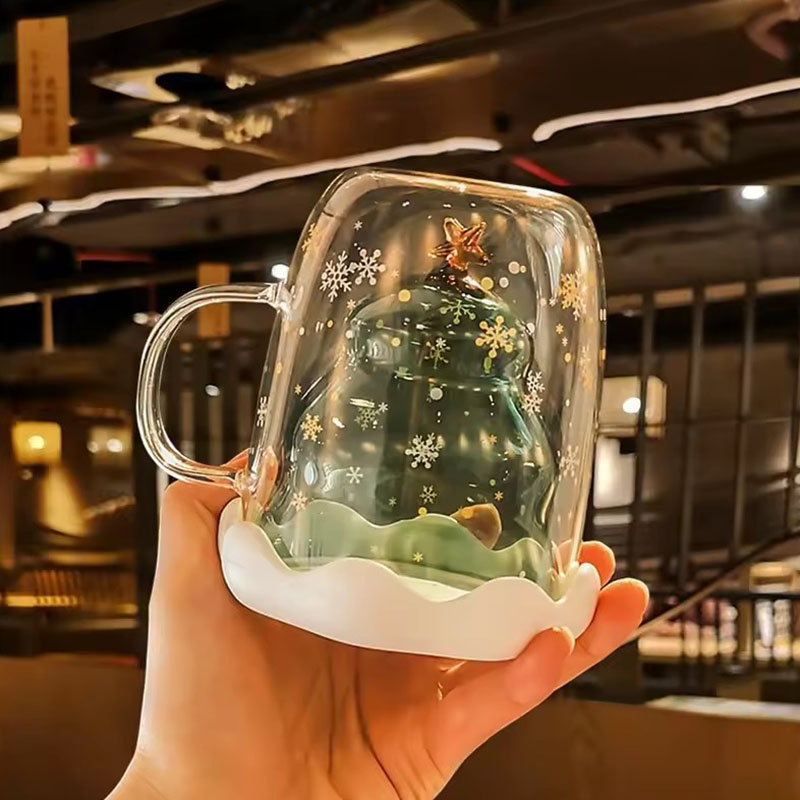 Top Seller Promo Borosilicate Double Wall Christmas Tree Mug Eco-Friendly Coffee Mug for Gifts